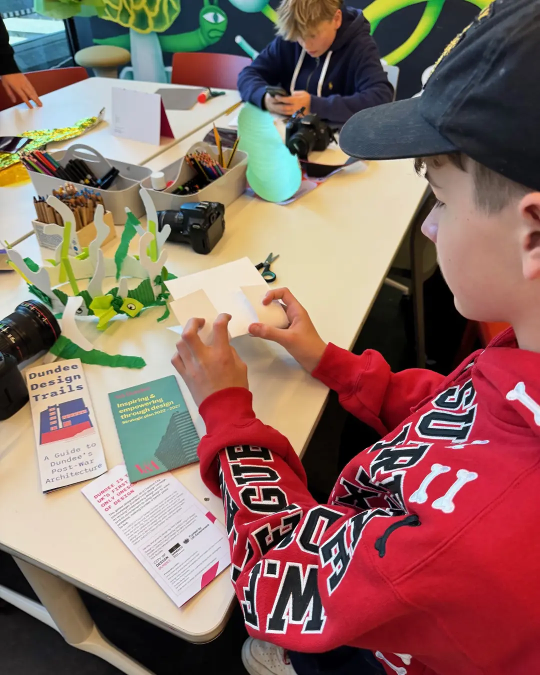 Year 10 photography students took part in an engaging graphic design workshop during their V&A Dundee trip. They experimented with layout, typography, and visual storytelling, learning how to combine images and text to create striking designs that will inspire their future projects.