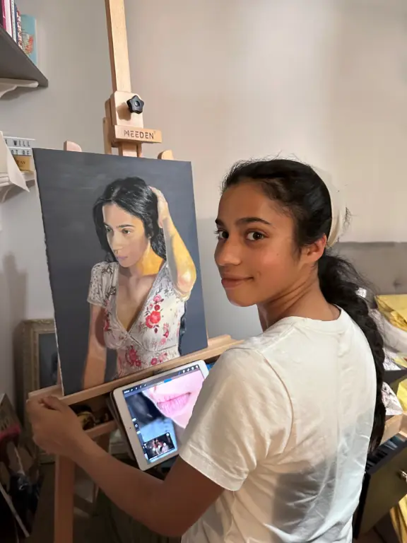 “Ruby really enjoyed the time she spent on set on Portrait Artist of the Year. She knew that it would be a challenge trying to produce work under the time pressure and camera scrutiny, but she loved the support from the audience and was excited to take part in the competition.”